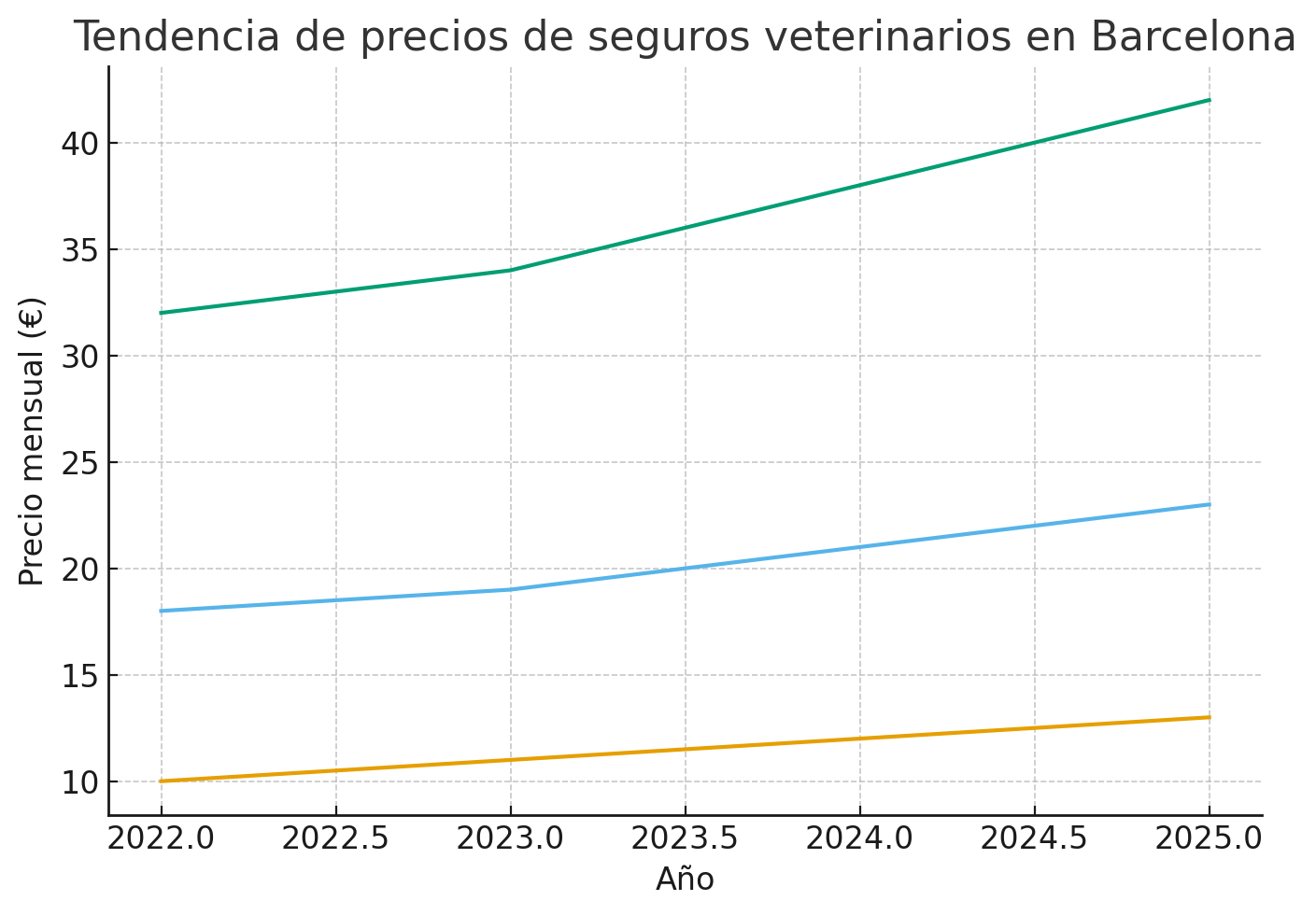 Gráfico: Tendencia del precio de los seguros veterinarios en Barcelona (2022–2025)