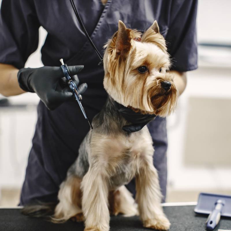- Corte de pelo a tijera o máquina (según raza y estilo).