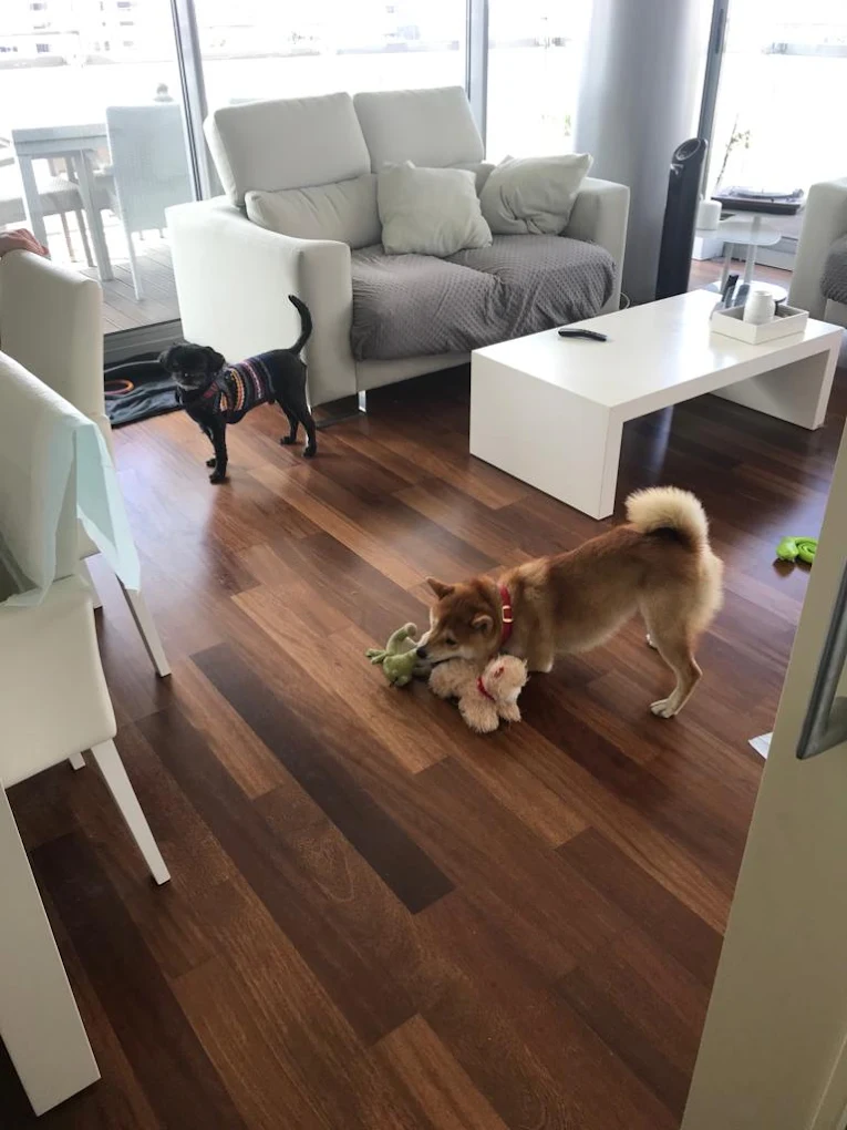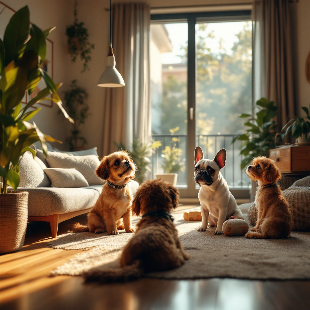 Tendrán libertad de movimientos en un piso de 100 metros cuadrados con una gran terraza que rodea el piso. El edificio está vigilado las 24 horas del día por un guardia para garantizar la seguridad. Hay varios parques y la playa cerca para dar agradables paseos. Nuestro espacio está diseñado principalmente para perros pequeños y medianos.